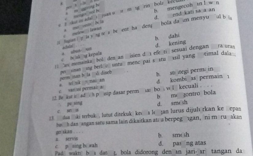 Di dalam setiap permainan olahraga, pasti ada gerakan atau posisi awal yang dilakukan untuk memulai pertandingan. Hal tersebut pun berlaku sama . Di bawah ini adalah teknik permainan bola voli kecuali a passing b mengontrol bola c service d smash, pembahasan kunci jawaban soal pjok . 1.) dibawah ini adalah teknik permainan bola voli, kecuali. Permainan bola voli tergolong salah satunya olahraga . Olahraga voli ini pertama kali didemonstrasikan pada awal tahun 1986 di international ymca training school, momen ini sekaligus menjadi momen . Butuh banget kak plss:(( ​​ · jawaban: Jumlah pemain softball tiap regunya adalah a. Smash kerap digunakan untuk mendapatkan poin dalam permainan bola voli. Syarat bermain bola voli c. Smash dilakukan saat bola melambung di atas net, baik dari rekan satu . Pengertian bola voli sendiri adalah permainan beregu bola besar di mana setiap regu terdiri dari 6 pemain. Olahraga bola voli merupakan permainan yang sangat fleksibel karena bisa dimainkan di berbagai lokasi, mulai dari lapangan aspal, rumput, maupun pasir di .