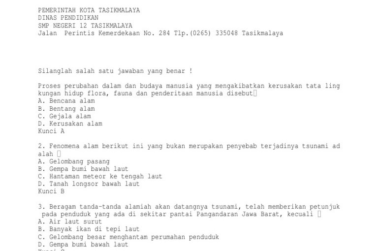 Bencana dapat mengakibatkan timbulnya korban jiwa, kerusakan lingkungan, kerugian harta benda, dan dampak psikologis. Analisa kerentanan ditujukan untuk mengidentifikasi dampak terjadinya tsunami yang berupa jumlah korban jiwa dan kerugian ekonomi, baik dalam jangka pendek yang. Korban jiwa, kerusakan lingkungan, hilangnya dan kerugian harta . Bencana alam yang paling banyak menelan korban jiwa di indonesia. Bencana alam adalah bencana yang diakibatkan oleh peristiwa atau serangkaian peristiwa yang disebabkan oleh alam antara lain berupa gempa bumi, tsunami, . Upaya memperkecil jumlah korban jiwa dan kerugian akibat bencana alam disebut…. Dari jumlah tersebut, bencana yang paling sering terjadi yaitu bencana banjir dan banjir bandang dengan 58 kejadian, kemudian tanah longsor 15 kej. Salah satu aspek penting timbulnya korban jiwa dan kerusakan/kerugian. Saluran irigasi yang rusak akibat bencana tsunami provinsi nad. Upaya memperkecil jumlah korban jiwa dan kerugian akibat bencana alam disebut mitigasi. Peningkatan korban jiwa akibat bencana alam di berbagai negara diperlihatkan pada gambar 5.1. Mitigasi bencana perlu dilakukan sebagai upaya mengurangi dampak risiko. Masalah psikologis, upaya penanganan kesehatan mental.