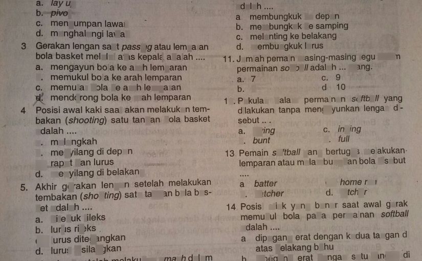 Mendrible bola terlalu tinggi b. 1 Berilah tanda silang (x... | Lihat cara penyelesaian di