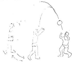 Saat bola dilemparkan langkahkan kaki bagian belakang ke depan sehinnga semua badan menghadap ke depan.