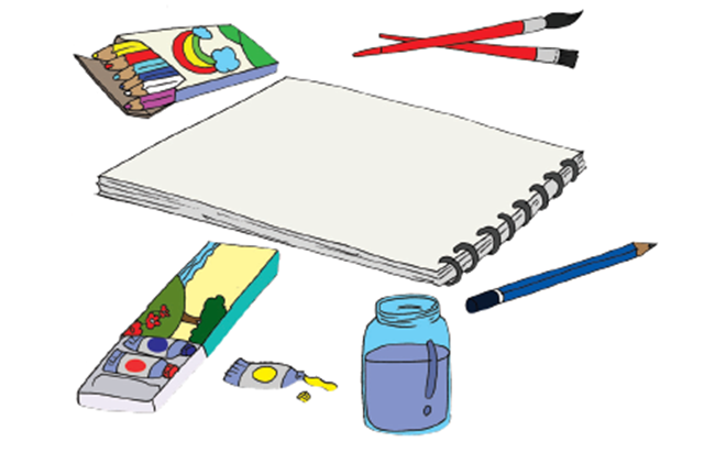 Menggambar ilustrasi yaitu menyiapkan bahan dan alat, menentukan tema, .