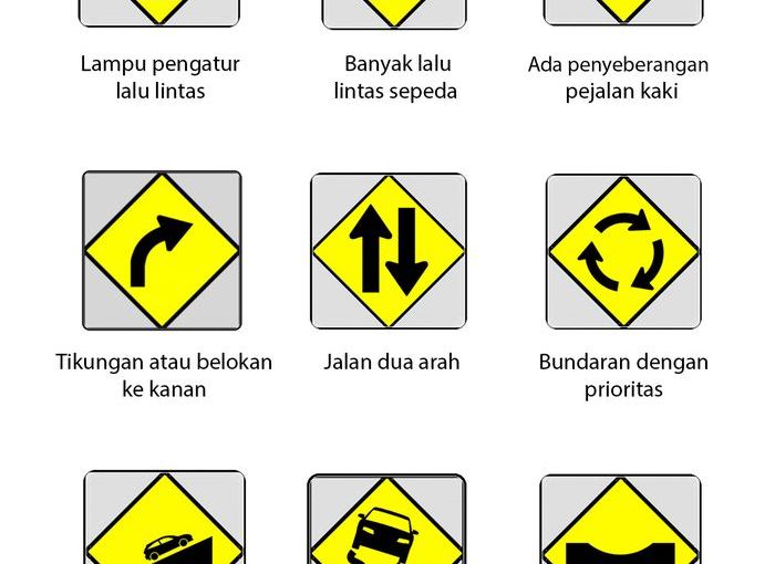 Pada dasarnya, jenis rambu ini memiliki warna dasar kuning dengan gambar atau . Jalan raya mesti menjadi tempat yang aman dan nyaman bagi semua penggunanya. Secara pengertian, rambu lalu lintas dapat diartikan sebagai pertanda di jalanan dalam berbagai wujud (angka, huruf, lambang, kosakata, ataupun . Warning road sign berfungsi untuk memperingatkan pengguna jalan akan situasi lalu lintas yang dapat berpotensi bahaya. Ketertibanmu dalam berkendara, sangat berperan dalam mewujudkan hal .