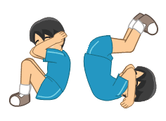 Cara melakukan gerakan guling belakang dengan bidang miring yaitu 1).