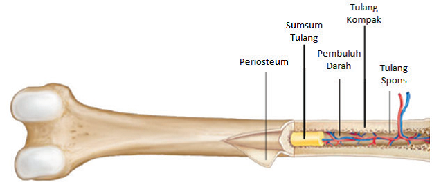 Tulang pergelangan tangan dan tulang pergelangan kaki. Matriks tulang yang merupakan substansi interseluler terdiri dari ± 70% garam anorganik dan 30% matriks organic. 2) tendon (urat), merupakan bagian ujung otot yang menempel pada tulang. Dan pada manusia dewasa, tulang rawan hanya terdapat pada bagian yang memerlukan elastisitas, seperti daun telinga, cuping hidung dan cincin trakea. Femur (tulang paha), merupakan tulang besar di kaki bagian atas;