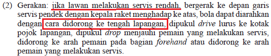 Hal yang harus diperhatikan saat menerima servis adalah usaha untuk menjatuhkan bola, bukan mengangkatnya ke atas karena jika pengembaliannya . Jika arah bola rendah dari arah servis, maka pengembalian bola yang benar adalah. Tujuan utama menggunakan servis panjang adalah agar melempar kok setinggi dan sejauh mungkin ke arah belakang area lawan. Bola didorong ke tengah lapangan c. Analisis, ketepatan, servis panjang forehand. Setiap pengembalian bola harus diarahkan ke bawah jika memungkinkan. Bagian forehand atau didorong ke arah pemain yang melakukan servis. Ketika lawan mundur, anda bisa memaksimalkan pengembalian bola sesuai yang diinginkan. Untuk menghasilkan pengembalian servis yang baik (bola tidak. Jika arah bola rendah dari arah service maka pengembalian bola yang . Gerak spesifik pengembalian pukulan servis. Jika arah bola rendah dari arah servis, maka pengembalian bola yang benar adalah.a. Untuk menyajikan bola pertama yang.