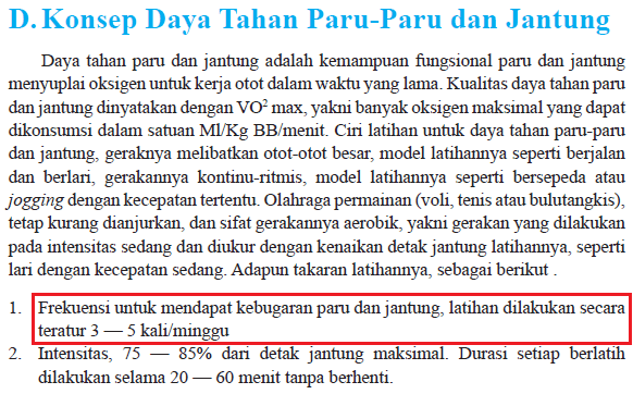 Prinsip konsistensi pada latihan kebugaran jasmani adalah kemauan untuk melakukan latihan dalam waktu yang cukup lama agar mendapatkan . 20 menit tidak termasuk waktu untuk pemanasan atau pendinginan. Waktu yang diperlukan untuk latihan kebugaran jasmani bukan atlet adalah. Waktu yang diperlukan untuk latihan kebugaran jasmani bukan atlet adalah. Waktu yang diperlukan untuk latihan kebugaran jasmani bukan atlet adalah minimal 20 menit. Untuk berlatih kesegaran jasmani bukan atlit diperlukan waktu minimal 20 menit,. 20 menit tidak termasuk waktu untuk pemanasan atau pendinginan. Jelaskan waktu yang diperlukan untuk latihan kebugaran jasmani bukan atlet adalah.8.)jelaskan gerakan latihan kekuatan otot punggung .