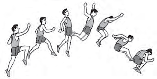 Posisi badan pada saat mendarat. Pada saat mendarat, yang perlu diperhatikan adalah : Tahap mendarat menggunakan kedua kaki dalam lompat jauh gaya menggantung. Posisi badan saat mendarat dalam lompat jauh yang. Pada saat melakukan tumpuan, posisi badan tidak boleh terlalu condong.