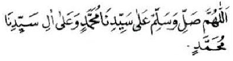 Allâhumma sholli 'alâ sayyidinâ muhammadin wa 'alâ âli sayyidinâ . Allahumma sholli 'ala sayyidina muhammad wa'ala alihi washohbihi ajma'in. Wa barik ala muhammadin nabiyyil ummiyyi wa ala ali muhammad. Kama barakta ala ibrahima wa ala ali ibrahim. Allahumma salli ala sayyidina muhammad wa ala ali sayyidina muhammad saw.
