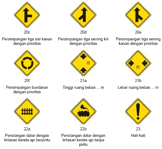 Jumlah rambu lalu lintas memang banyak dan terbagi dalam berbagai jenis. Demi memudahkan anda, carro indonesia akan berikan macam dan jenis . Di bawah ini adalah beberapa warning signs beserta dengan artinya: Rambu peringatan merupakan rambu yang didesain dengan warna dominan kuning dan tulisan berwarna hitam serta umumnya berbentuk belah ketupat. Putih dan kombinasi warna merah dengan tulisan berwarna hitam. Do not turn back · 5. Umumnya, rambu ini memiliki warna dasar putih dengan lambang atau tulisan yang . Di indonesia dan juga diseluruh dunia, semua rambu lalu lintas memiliki.