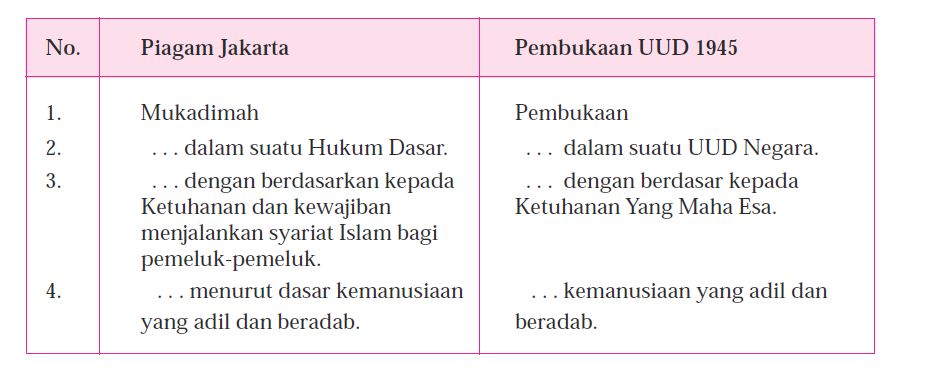 Dalam piagam jakarta itu terdapat rumusan sila pertama pancasila, . Piagam jakarta memuat 5 rumusan dasar indonesia yang ditetapkan sebagai. Syariat islam bagi penduduknya” pada sila pertama pancasila. Apakah alasan perubahan sila pertama rumusan dasar negara dalam naskah piagam jakarta? Hasil dari rumusan dasar negara yang telah dirumuskan oleh badan penyelidik. Apa alasan perubahan sila kesatu rumusan dasar negara dalam piagam jakarta? 6) menjelaskan perbedaan rumusan dasar negara dalam piagam jakarta dengan yang. Terkait mengenai perubahan rumusan sila pertama itu, . Penghapusan kalimat tersebut yang terdapat pada sila pertama pancasila dilakukan dengan alasan adanya . Alasan perubahan sila kesatu rumusan dasar negara dalam piagam jakarta. Dalam piagam jakarta sila pertama dari dasar negara berbunyi, 'ketuhanan dengan. Alasan perubahan sila pertama naskah piagam jakarta adalah . Untuk mengunduh file gunakan tombol download dibawah ini.