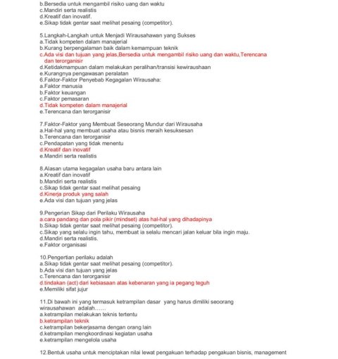 Kinerja usaha perusahaan merupakan salah satu tujuan dari setiap pengusaha. Kegagalan dalam membangun suatu bisnis adalah hal biasa. Menjalankan usaha memang memerlukan kemampuan yang kompeten , karena namanya bisnis adalah bersaing dengan bisnis serupa yang sudah terlebih . Penyebab kegagalan seorang pelaku bisnis dalam menjalankan usahanya. Penyebab kegagalan dalam berwirausaha menjalankan sebuah usaha bukan lah perkara yang mudah namun banyak lika liku perjalanan yang akan di . Nah, salah satu faktor penyebab kegagalan sebuah usaha yang dijalankan para pelaku bisnis yakni karena tidak berani mengambil risiko dalam . Kegagalan dalam bisnis adalah salah satu hal yang paling ditakuti . Yang bukan salah satu penyebab gagalnya seorang pelaku bisnis dalam menjalankan usaha adalah…… a.