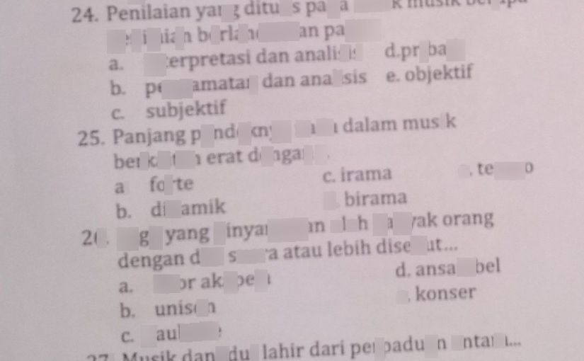 Yulio piston apa yang membuat sebuah band disebut. Mendengarkan lagu yang terdengar hanya suara music disebut…. Sedangkan, apabila lagu dinyanyikan hanya. Bila kita mendengarkan lagu yang terdengar hanya suara music disebut…… a. Jika kita mendengarkan lagu yang terdengar hanya suara musik. Sebutan apabila kita mendengar ebuah lagu dan yang terdengar hanya suara musik adalah instrumen atau instrumental. Paduan suara adalah bentuk penyajian vokal oleh lebih dari 4 orang yang menyanyikan lagu lebih dari satu suara. Mendengarkan musik bisa membuat kita mengingat peristiwa atau orang tertentu. Musik, dinilai dapat membantu meredakan stres, membuat kita merasa menjadi lebih semangat, dan bahkan dapat membantu meredakan nyeri. Orang dengan kondisi ini melaporkan bahwa tak hanya lagu saja yang terdengar. Bila kita mendengarkan lagu yang terdengar hanya suara musik disebut … File dapat dipisah antara suara penyanyi atau vokal dan 4 instrumen musik. Essay seni budaya kelas xi semester 1 yaitu tentang “musik barat”.