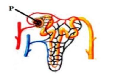 Bagian ginjal yang ditunjuk oleh huruf p berfungsi untuk proses filtrasi yang menghasilkan urine primer.