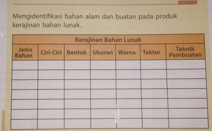 Jenis bahan , ciri ciri , bentuk , ukuran , warna . Bahan alami bisa diambil dari tanaman ataupun serat hewan. Jenis kedua, yakni produk kerajinan bahan lunak buatan. Mengidentifikasi bahan alam dan buatan pada produk kerajinan bahan lunak. Cara pengolahannya juga secara alami tidak dicampur maupun dikombinasi dengan bahan buatan. Teknik pembuatan produk dari bahan lunak adalah kumpulan bahan . Mengidentifikasikan bahan alam dan buatan pada produk kerajinan bahan lunak brainly co id ; Contohnya bubur kertas, gips, sabun, lilin, .
