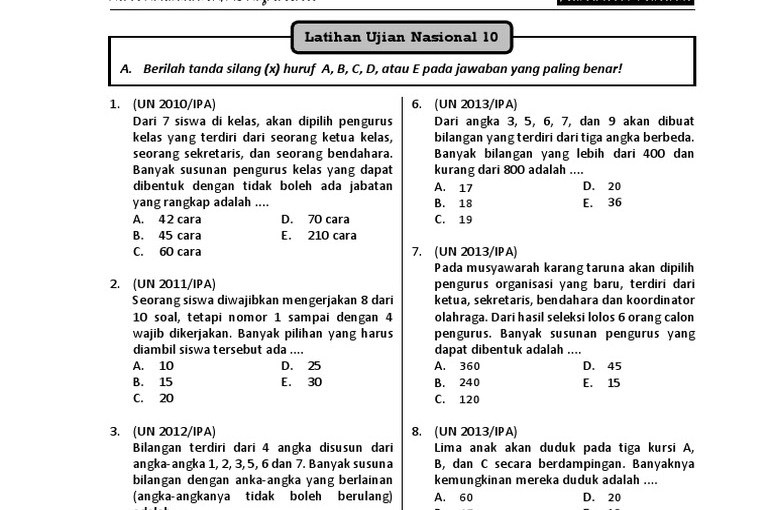 Dari ighass 19022017 masuk untuk menambahkan komentar. Dari angka 3, 5, 6, 7, dan . Banyak susunan kata yang dpat dibentuk dari kata ”wiyata” adalah. Bila digunakan rumus permutasi akan diperoleh 3p3 3. Soal tentang permutasi un 2013. Dalam penyusunan skripsi ini, penulis telah banyak mendapatkan bimbingan,. Banyak susunan kata yang dapat dibentuk dari kata “wiyata” adalah …. Banyak susunan kata yang dapat dibentuk dari kata “wiyata” adalah.