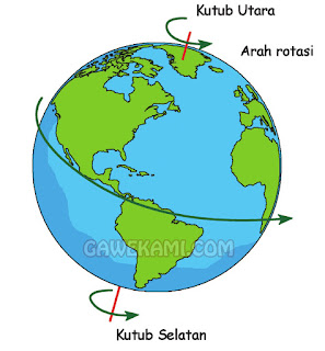 Bumi terus berotasi sehingga matahari tampak terbit di sebelah timur, dan tenggelam di sore hari.