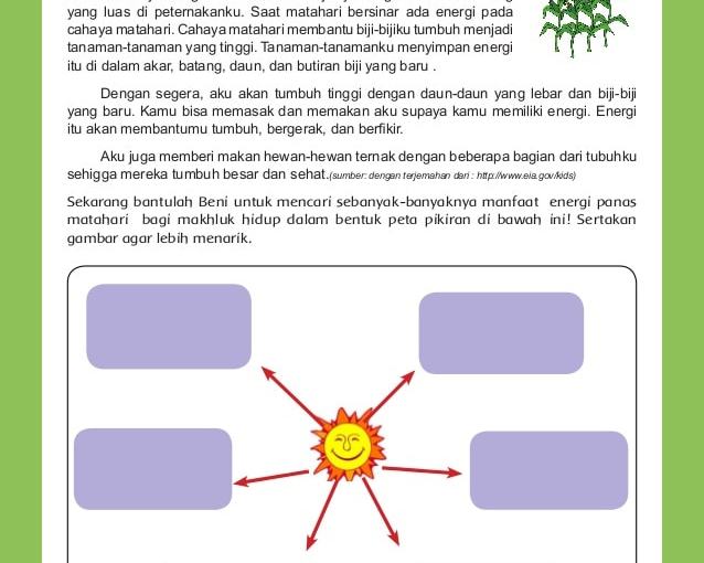 Berikut manfaat energi matahari bagi makhluk hidup dalam bentuk peta pikiran di kunci jawaban tema 2 kelas 4 sd dan mi halaman 5. Memunculkan beragam bentuk perilaku di masyarakat khususnya bagi para peserta didik. Siswa membuat peta pikiran tentang manfaat energi matahari bagi makhluk hidup baik dengan tulisan maupun dengan gambar. Pengamatan perubahan bentuk energi matahari dalam kehidupan. Manfaat energi matahari bagi makhluk hidup dalam bentuk peta pikiran . Sepanjang hidup manusia selalu mencari berba…. Materi berikut akan membahas manfaat energi matahari bagi makhluk hidup dalam bentuk peta. Aku ali si biji energi.