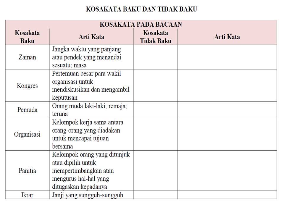 20+ Kosakata Pada Bacaan Kosakata Baku Arti Kata Kosakata Tidak Baku Arti Kata