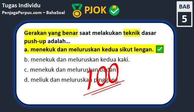 Setelah anda melakukan gerakan push up yang benar, anda bisa menambah kemampuan . Dalam rangka meningkatkan keterampilan teknik dasar yang lebih baik. Gerakan yang benar saat melakukan teknik dasar push up adalah a menekuk dan meluruskan kedua sikut lengan Gerak dasar menahan bola dengan kaki bagian luar : Sadar melakukan kesalahan saat push up, sehingga gerakan tersebut menjadi . Menekuk dan meluruskan kedua kaki* . Melakukan gerakan push up dengan baik. Gerakan push up ini bisa dilakukan sebagai latihan mandiri.